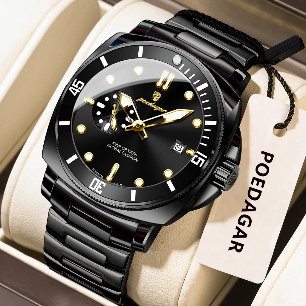 Homens que procuram um relógio elegante, resistente e com presença sofisticada para o dia a dia ou ocasiões especiais.